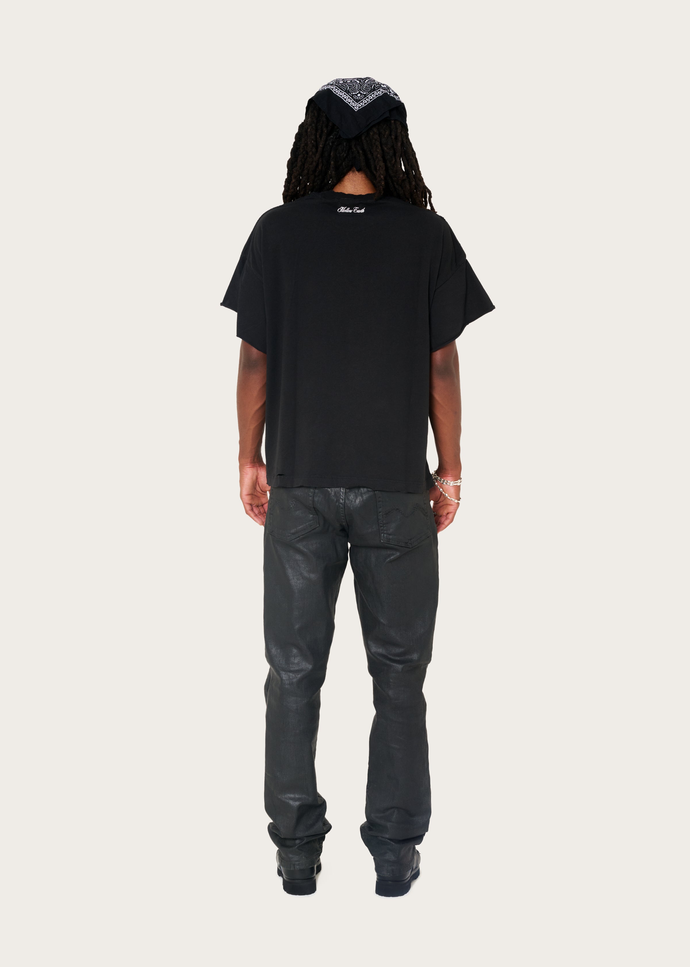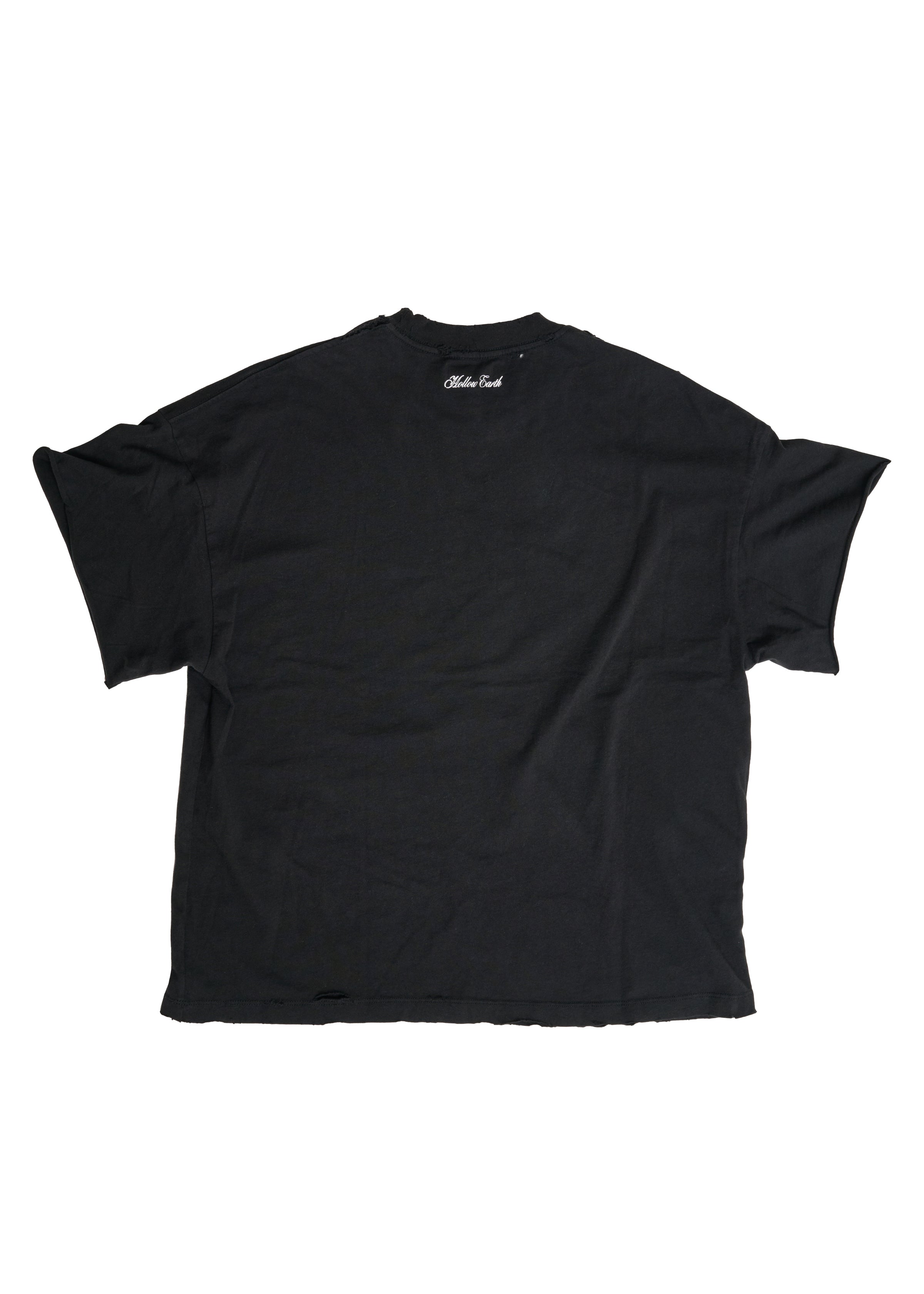 - HAND DISTRESSED AROUND COLLAR, SLEEVES AND BOTTOM EDGE
